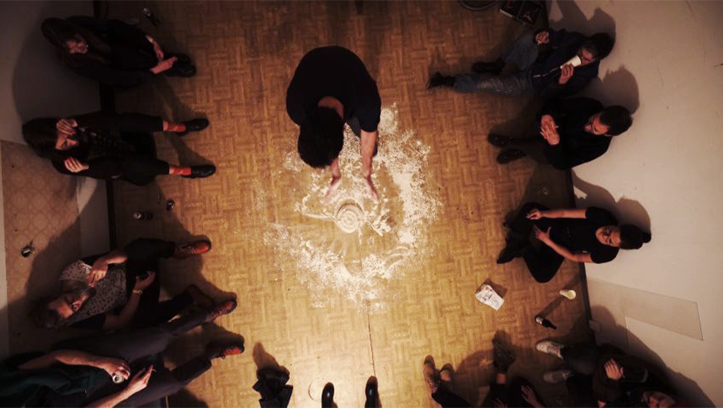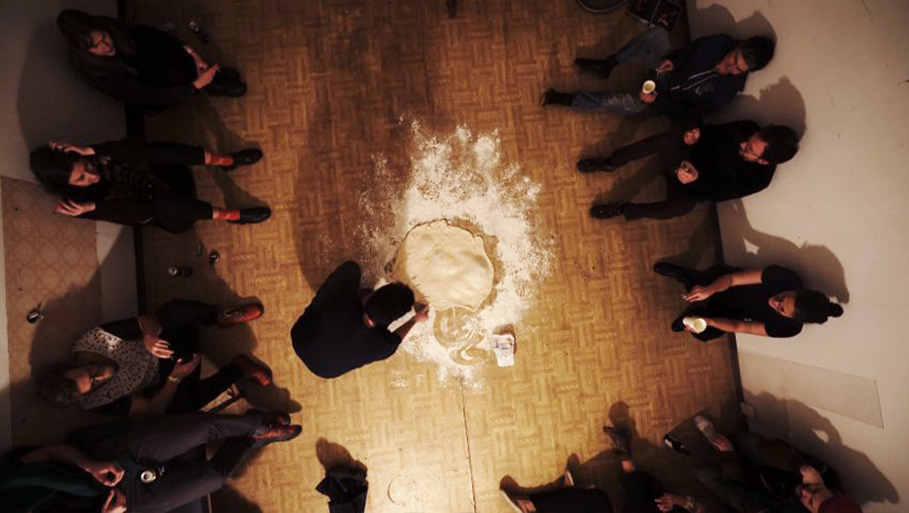 Circle of hospitality is an artwork which invites you to strech a space and feel the taste of welcoming and generosity. In this case the artist stretches the dough to make thin layers so he can roll the pie, traditional meal from Balkan. A peace of culture that he brings with him to Austria, which shows hospitality and a clear role to all migrants displaced somewhere or those who have wandered and settled on the soil of this land, a small part of the tradition that we all keep and nurture within us. The part of heritage that is most appreciated and well-intentioned.